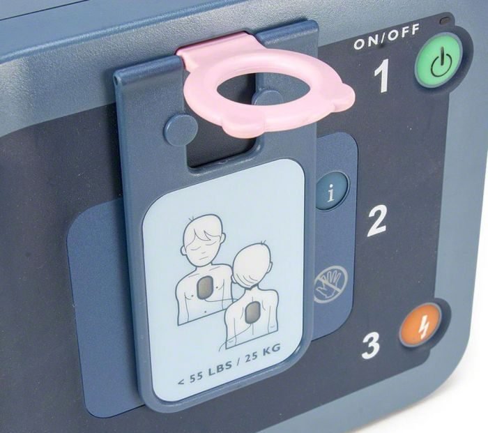 Voor kinderen van 1 - 8 jaar of met een gewicht onder de 25kg worden normaal gezien speciale elektroden gebruikt. Philips heeft voor de FRx AED een kindersleutel ontworpen. Deze kan rechtstreeks in de AED worden gestoken en kan samen met de volwassenelektroden worden gebruikt. De AED kondigt zodra de kindersleutel is ingestoken, direct de HeartStart FRx Baby/kindmodus aan. Het schokvolume wordt hierbij gereduceerd en de AED geeft desgewenst reanimatiebegeleiding voor baby's/kinderen.